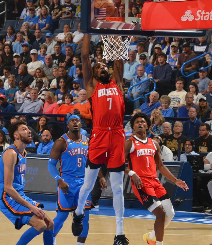 杜兰特19分7板3助3断、史密斯17分10板1助2断、申京14分13板5助、阿门13分9板3助2断、谢泼德7分2板3助、亚当斯6分11板2帽、奥科吉5分5板1助2断