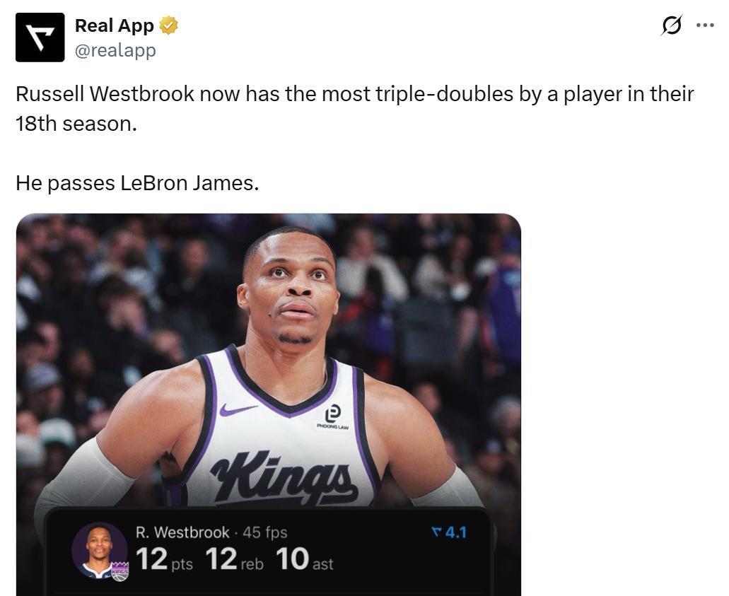 首先本场是威少生涯第540次拿到两双,超越保罗的539次升至NBA历史第二,仅次于斯托克顿714次。